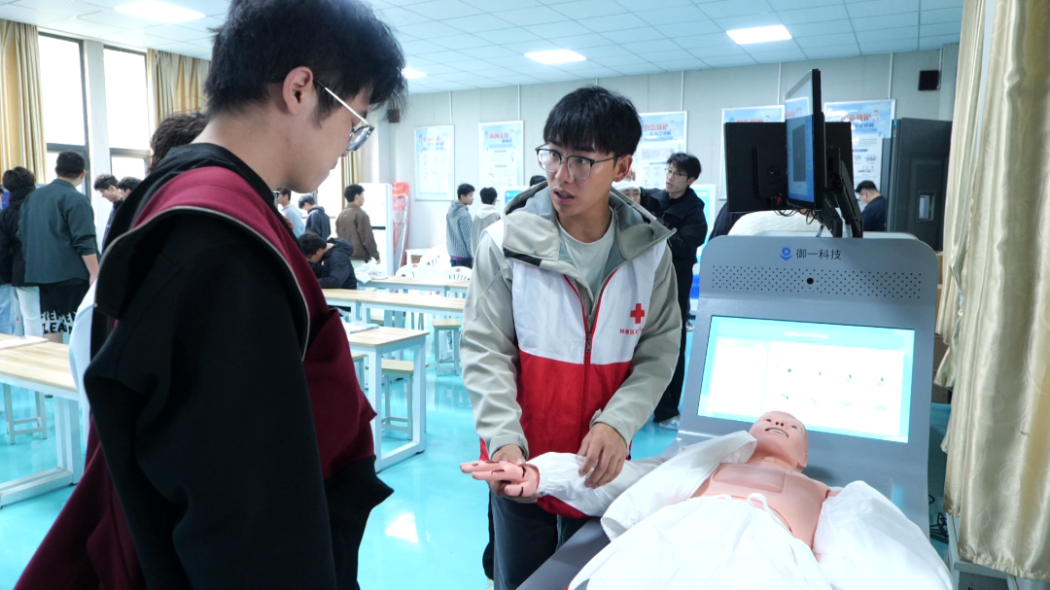 采访中,记者实地探访实训室,全面了解其建设背景、运营模式与教学成效。实训室划分理论教学、技能实操两大区域,配备高仿真智能模拟人、AED训练机等专业设备,深度融合人工智能技术,打造“学、练、演、考、创”全链条实训教学模式,有效解决了传统急救实训成本高、风险大、场景难再现的难题。